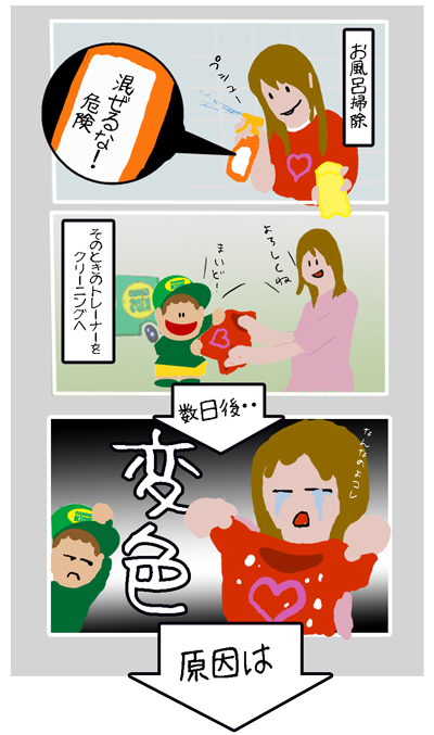 カビ取り剤を使用するときは衣類に注意して行いましょう。